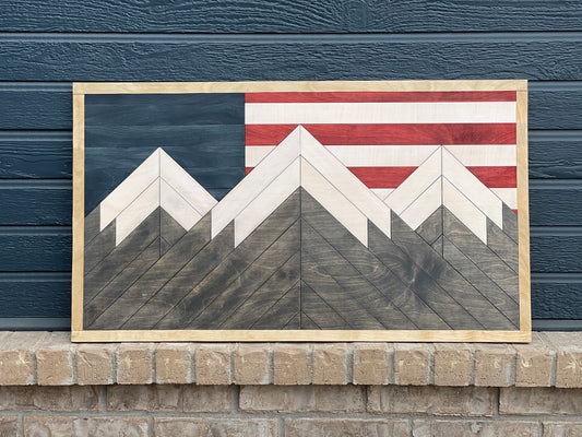 Quilted Colorado Mountain Wall Art, American Flag Art, Wood Wall Art, Home Decor, Cabin Decor, Restaurant Wall Art, Waiting Room Art