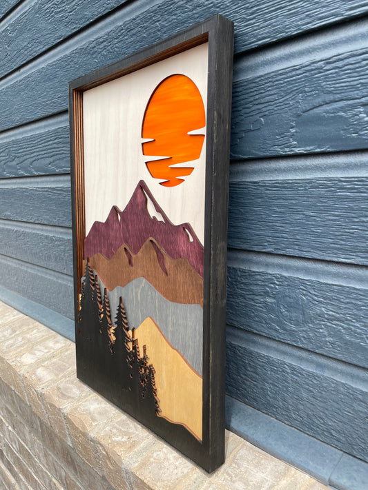 Wooden Mountain Wall Art, 7 Layer