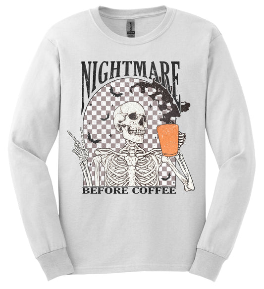 Nightmare Before Coffee; Long Sleeve & Short Sleeve Cotton Shirt, Adult Tee