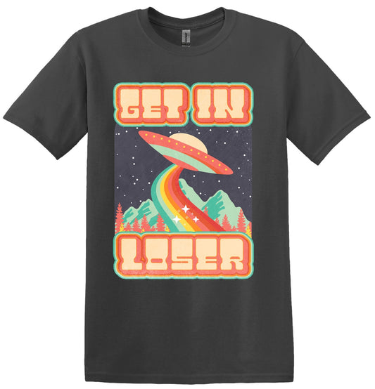 Get In Loser, Alien Abduction Short Sleeve Cotton Shirt, Women and Unisex Style Options, Adult Tee
