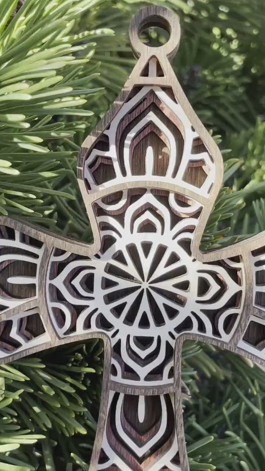 Wooden Cross Christmas Ornament, Personalized Optional