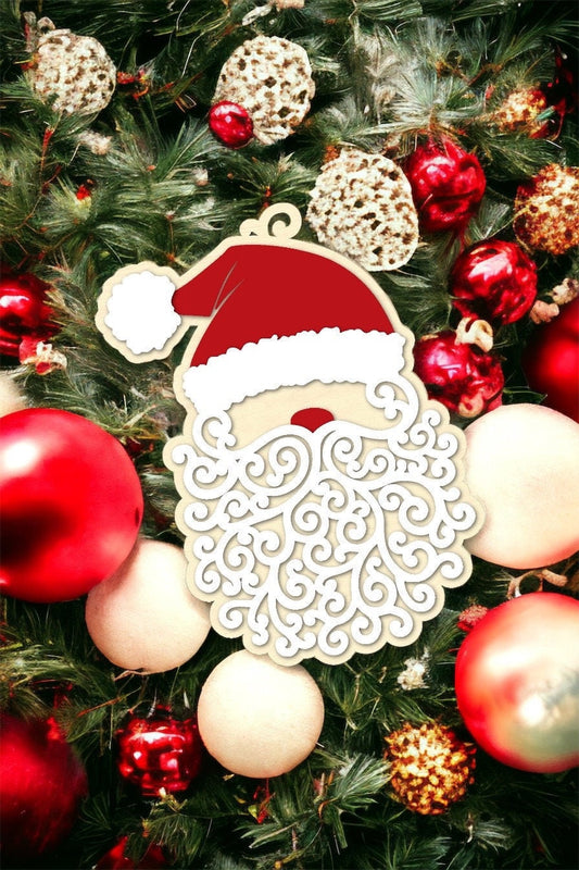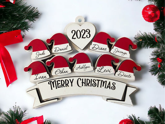 Personalized Santa Hat Ornament, Wooden, Layered Family Ornament