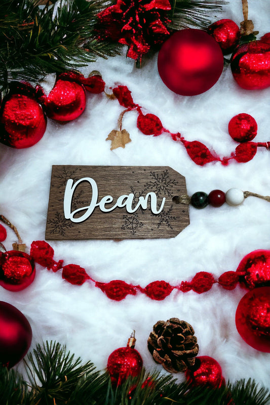 Personalized Christmas Stocking Tags, Wooden, Engraved and Layered