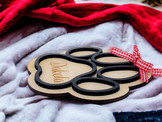 Dog Paw Print Ornament, Personalized Layered Wooden Ornament