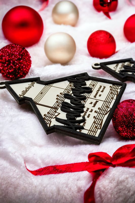 Church House Ornament, Jingle Bells, Come All Ye Faithful, Hallelujah, Layered Wooden, Set of 3