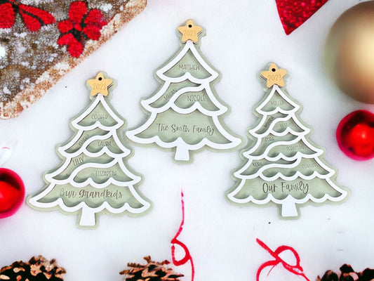 Personalized Family Ornament, Up to 10 names, Wooden with Clear Acrylic Backing, North Pole