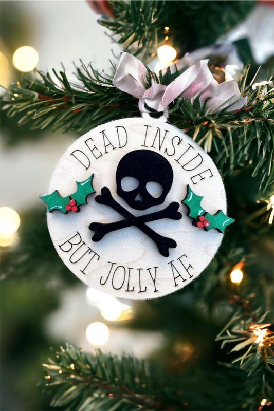 Funny Christmas Ornament, Dead Inside but Jolly AF, Wooden Ornament
