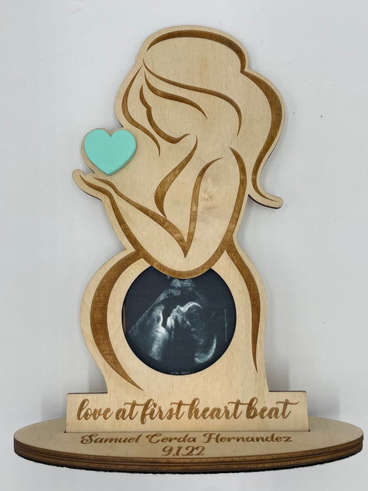 Sonogram Picture Frame, Wood with Felt Bottom, Personalzied with dates and Name