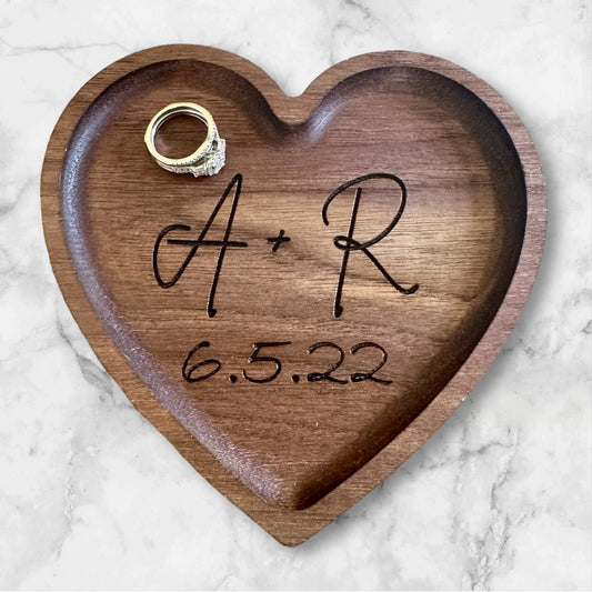 Custom Engraved Wooden Ring Dish - Personalized Engagement Gift for Wife - Wedding Anniversary Jewelry Holder