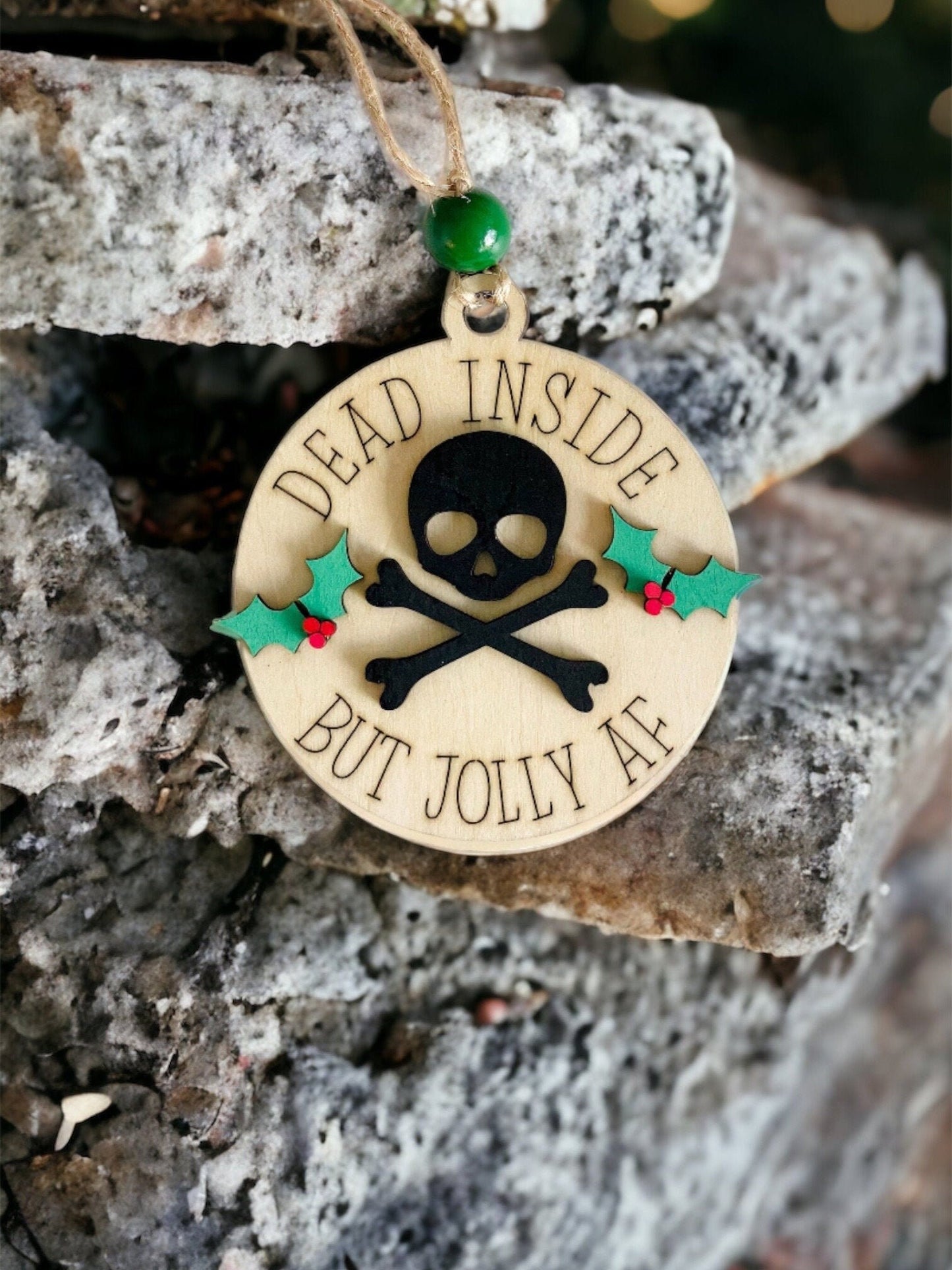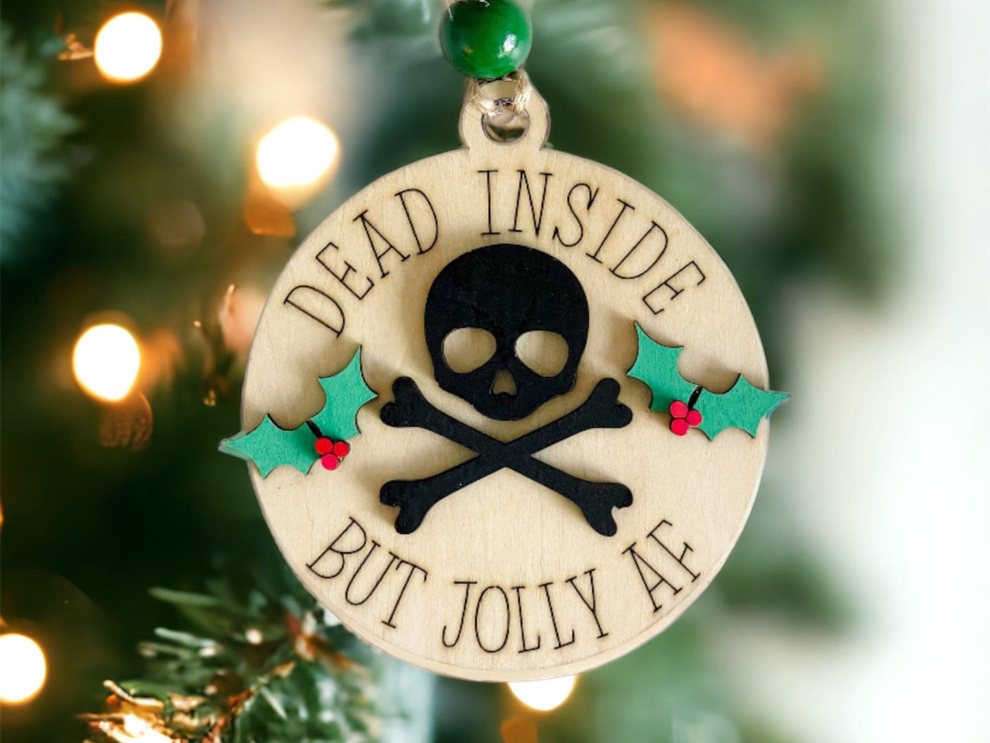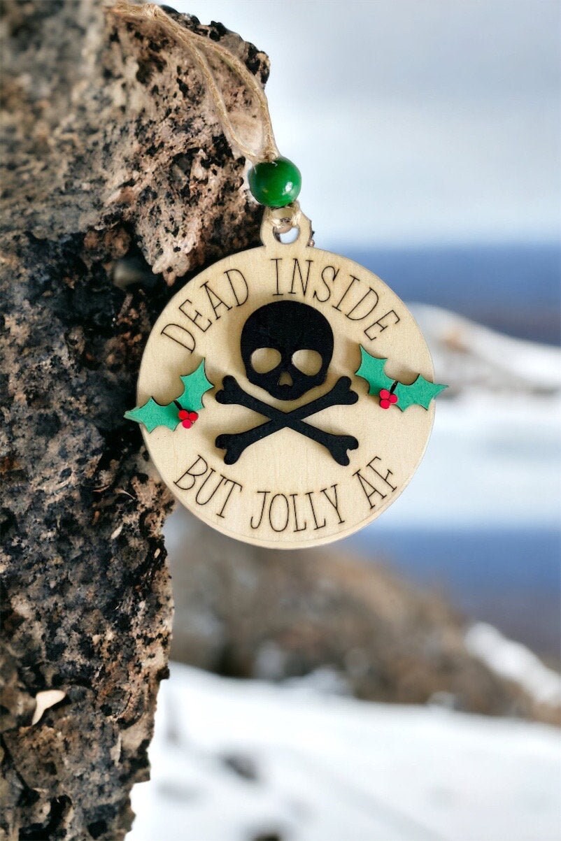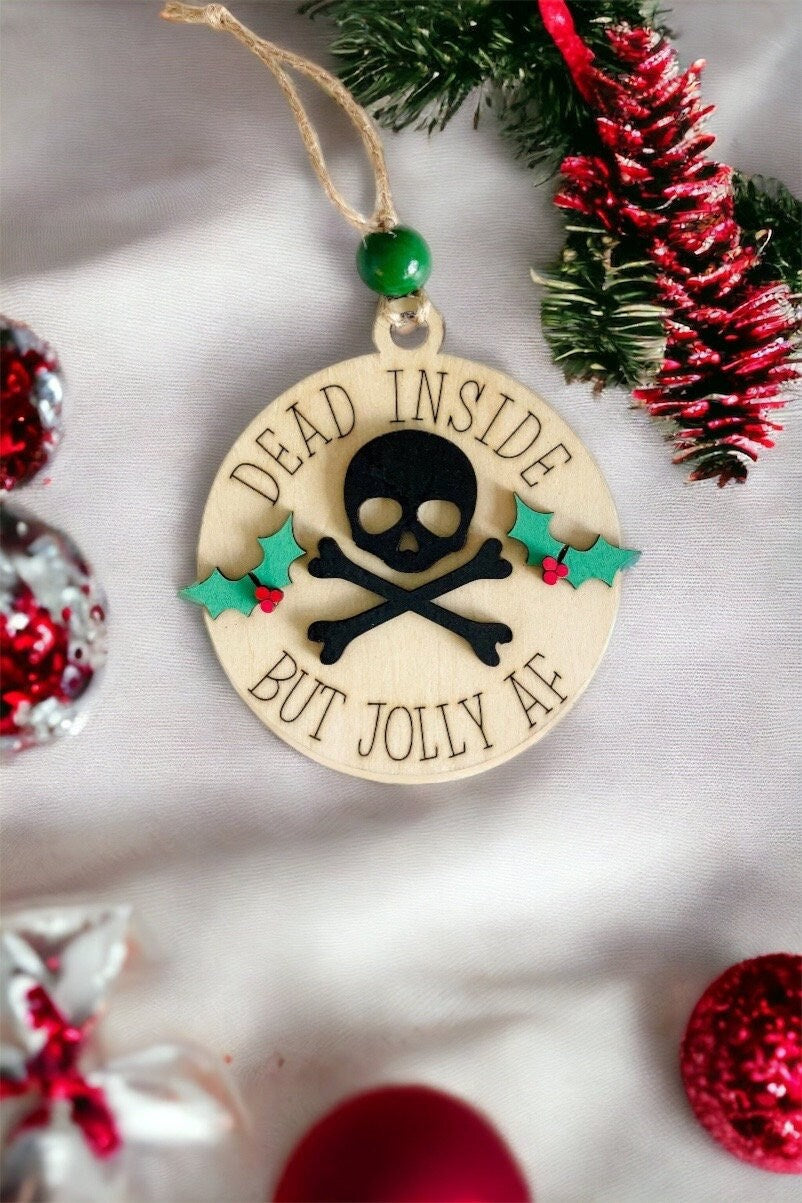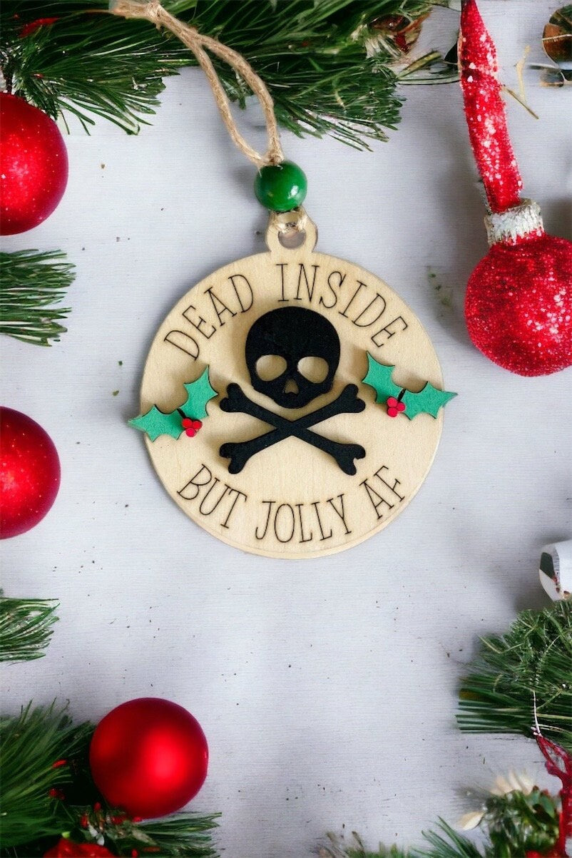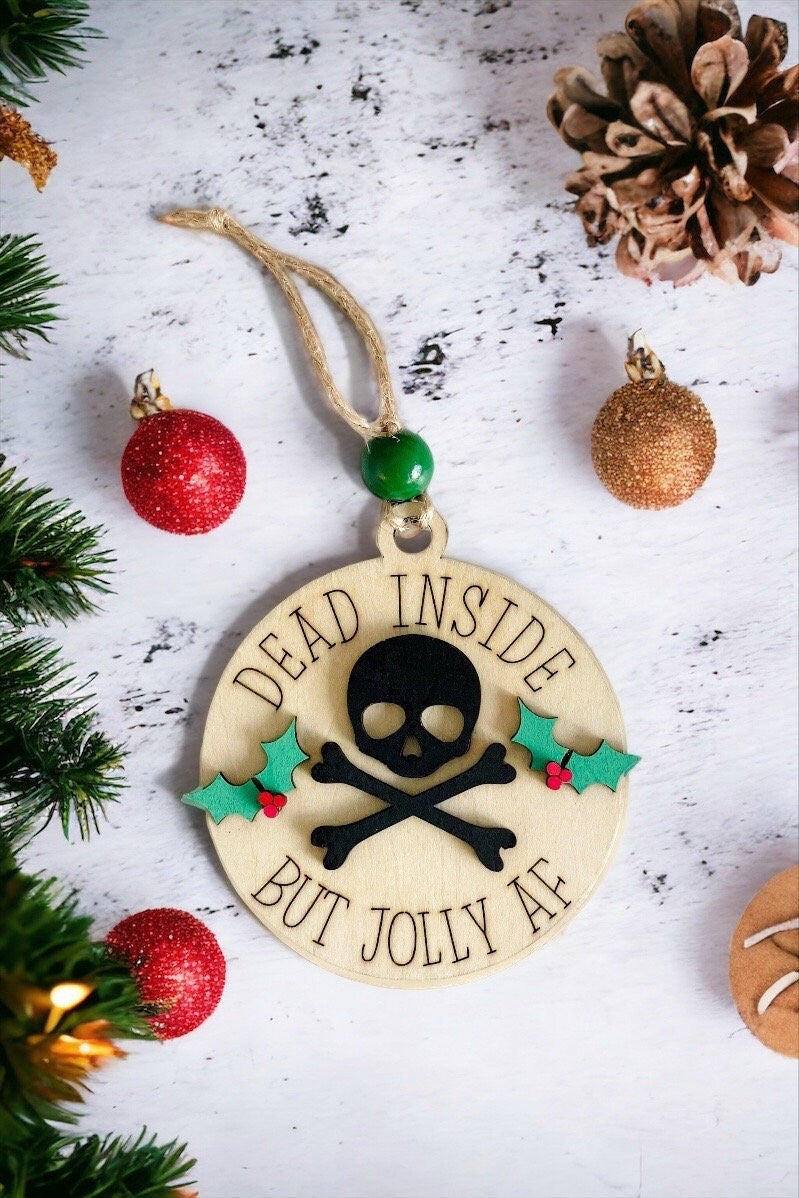 Funny Christmas Ornament, Dead Inside but Jolly AF, Wooden Ornament