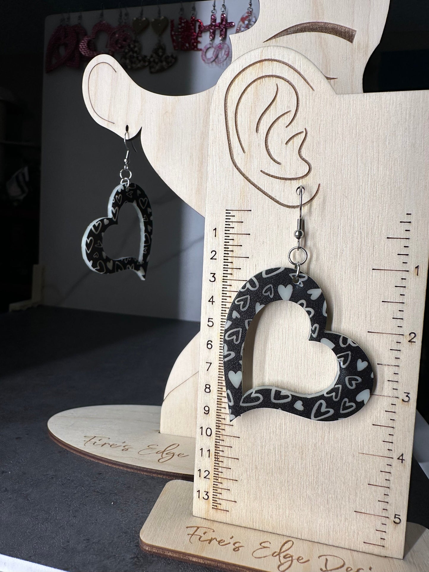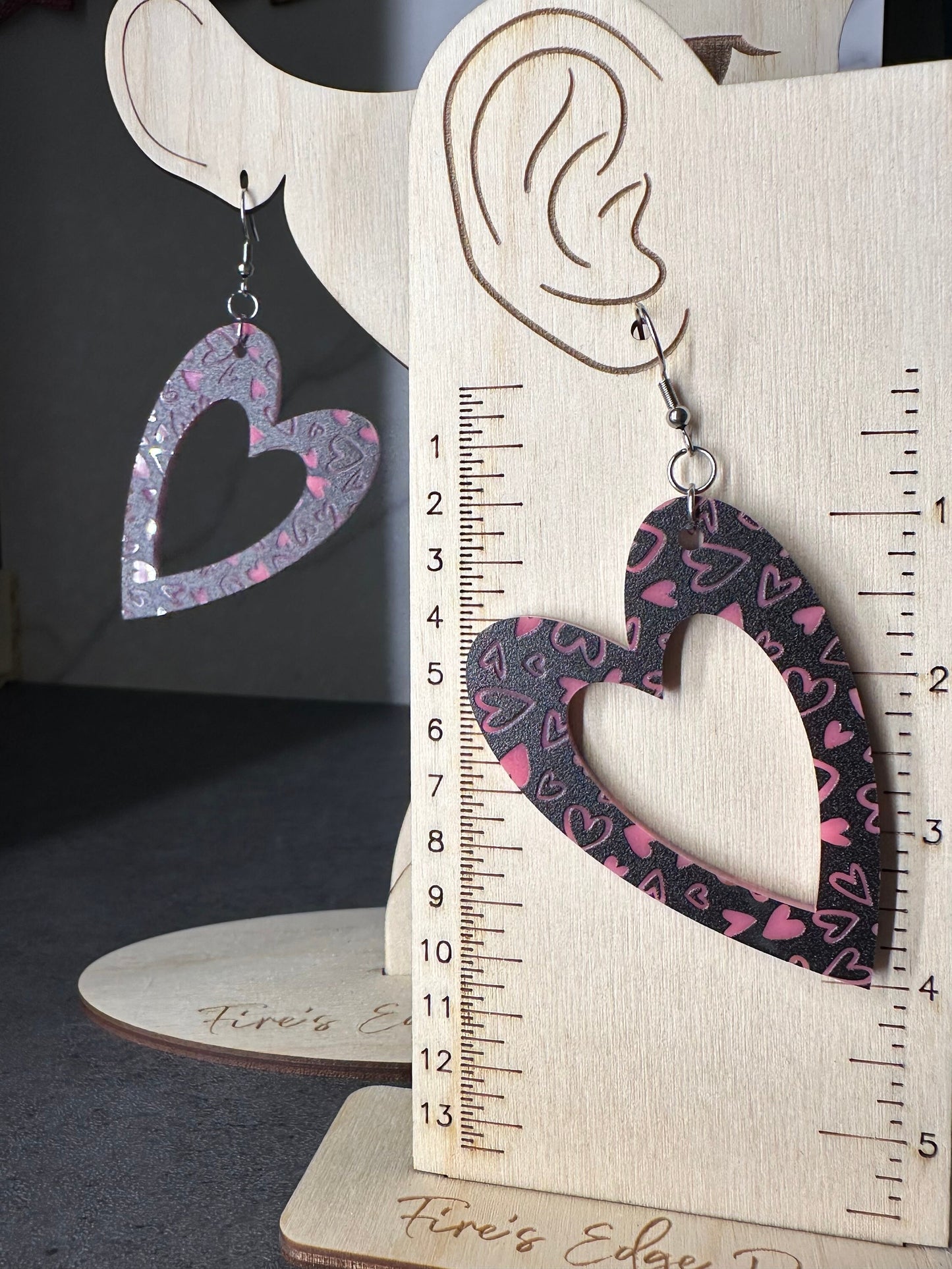 Beautiful acrylic earrings handcrafted to perfection! These will make a perfect Gift for her or a fun Valentine accessory! Made with hypoallergenic stainless steel hardware. Approximately 2.5” wide and 3.5” in length.