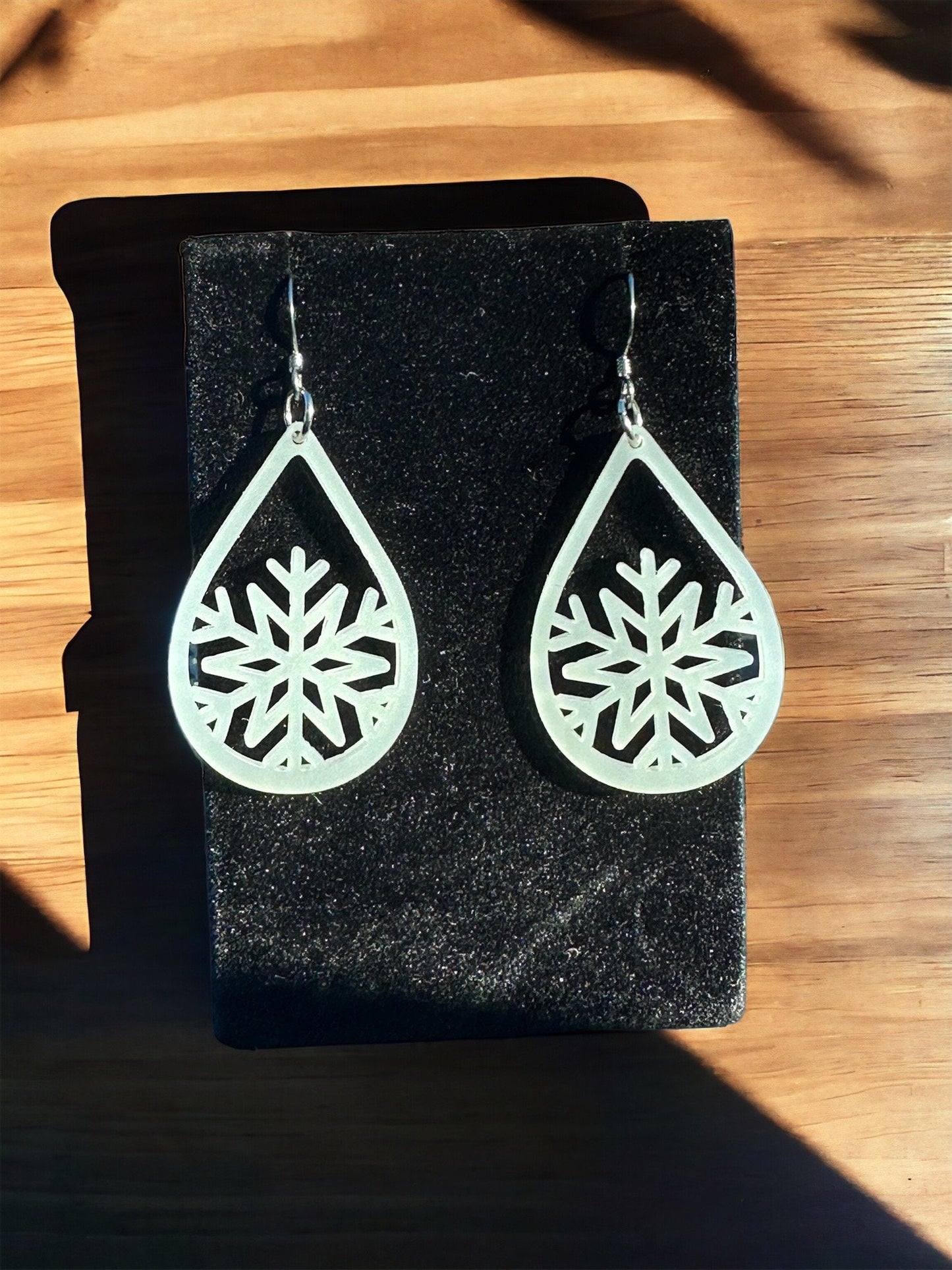 Snowflake Earrings Hypoallergenic Stainless Steel hook, Lightweight Acrylic